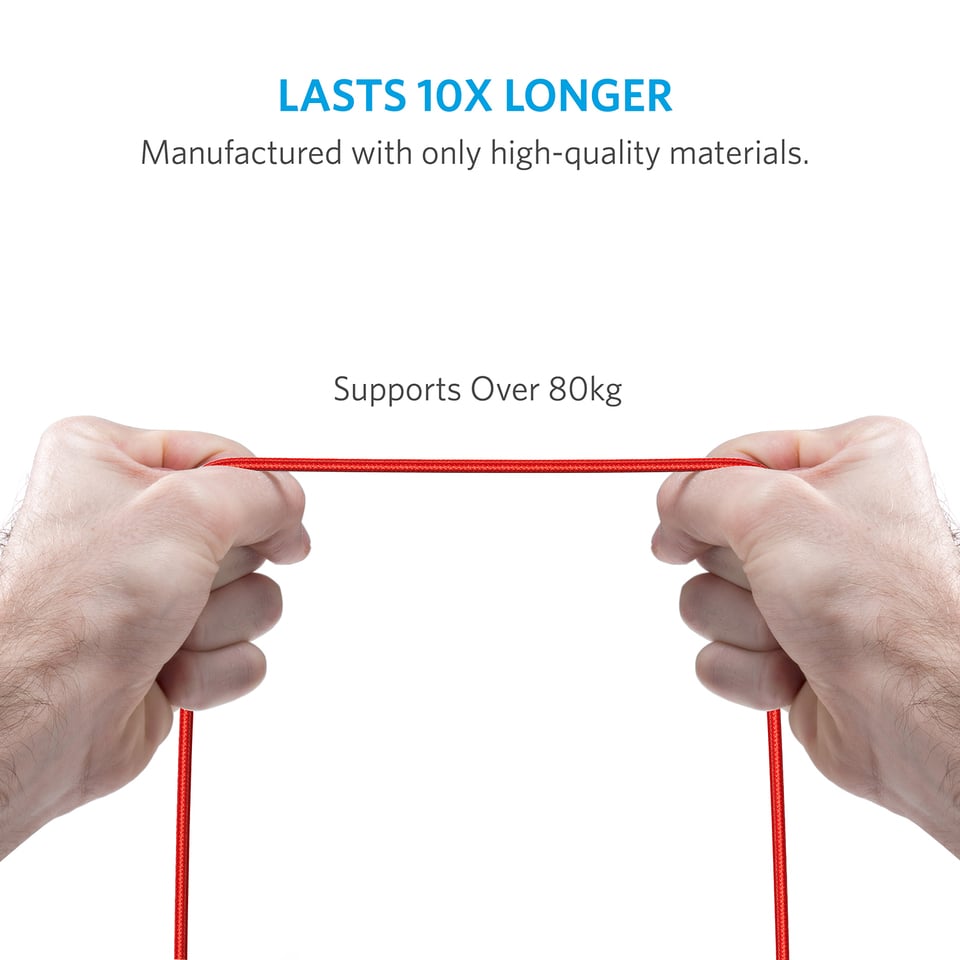 Anker Powerline+ Micro USB (3ft) The Premium and Durable Cable [Double Braided Nylon] for Samsung, Nexus, LG, Motorola, Android Smartphones and More (Red)