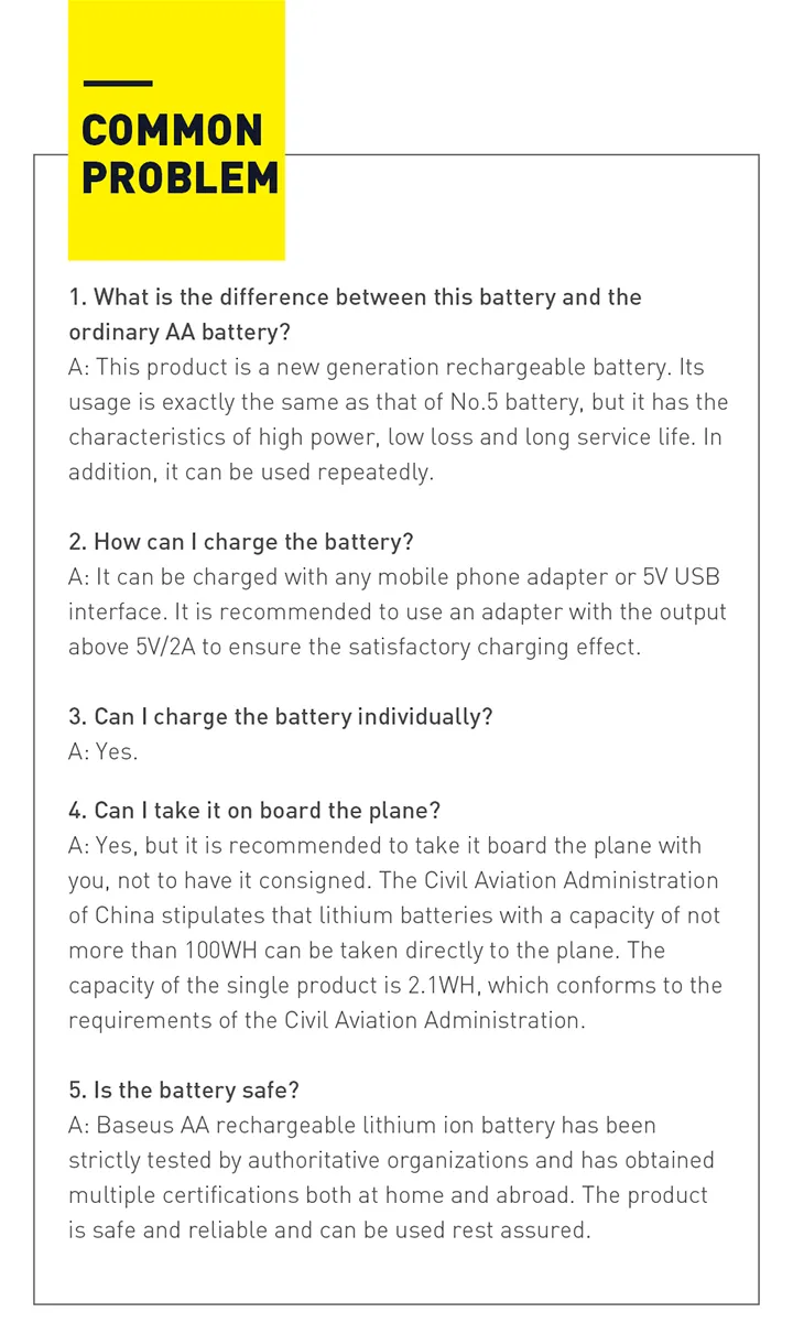 Baseus AA Rechargeable Li-ion Battery Pack