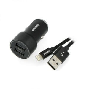 It allows you to charge your devices in your car without any problems. The high-quality control system provides protection against short circuits, overload, deep discharge, overheating and electromagnetic radiation. The minimal size of the charger does not hinder movement while driving. It has two ports which together can supply up to 3.4 A. A Lightning cable is included in the kit to quickly charge your smartphone.