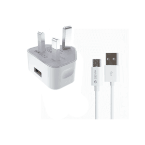 Devia Smart UK 3 Pin Charger Set with Micro USB Cable White EA158