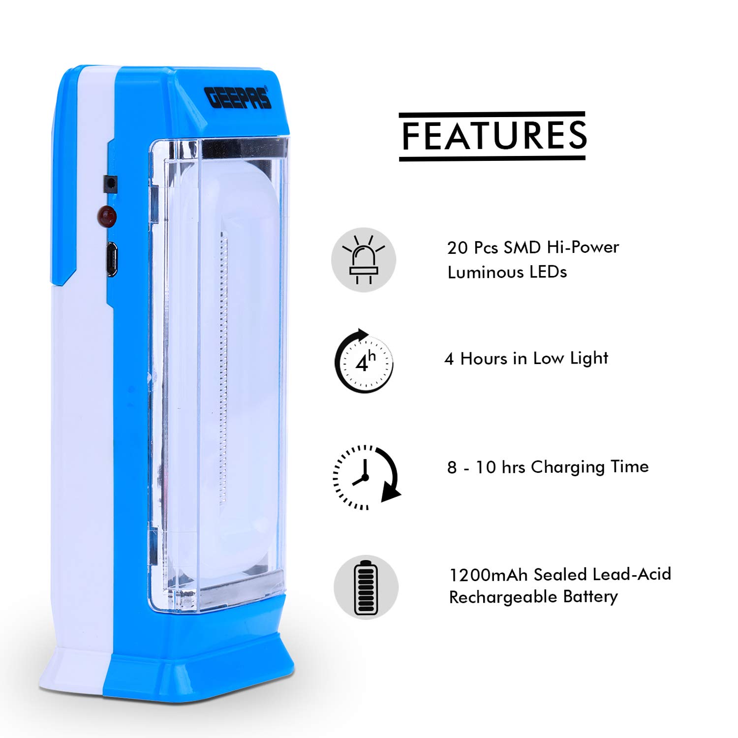 - RECHARGEABLE BATTERY: This rechargeable lanterns for indoor power outages utilizes a lead-acid battery with a limit of 4V 1200mAh. It can give ceaseless splendid light to as long as 4 hours making it ideal for outdoors and camping.