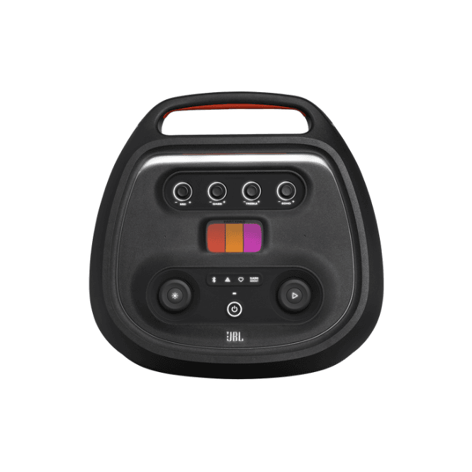 Lights, color, party! Transform your space into a captivating,full sensory experience with the biggest multi-dimensional lightshow of any party speaker. It’s got a unique starry night effect, cool light trails, strobes, and even lights that project onto any surface it’s sitting on. All of it syncs to your music and can be easily controlled via the streamlined, user-friendly dials on the top panel or through the JBL One app.