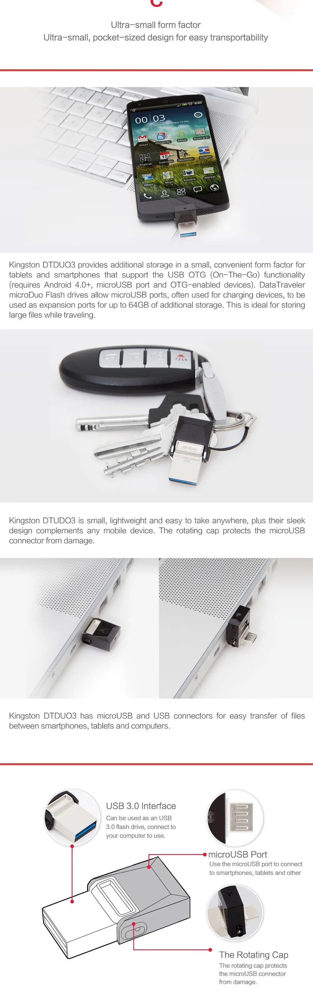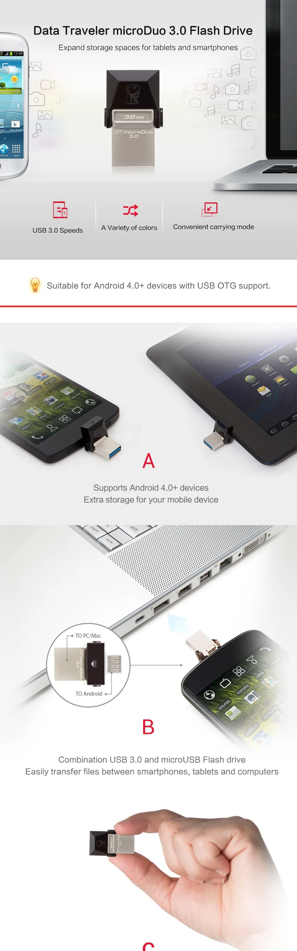- Expanded storage for tablets and smartphones with USB OTG support.