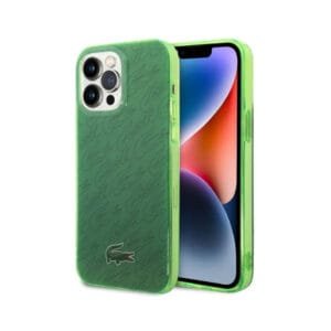 Lacoste Hard Case IML Double Layer & Dyed Bumper Signature Pattern Compatible with iPhone 14 Pro Max – Green