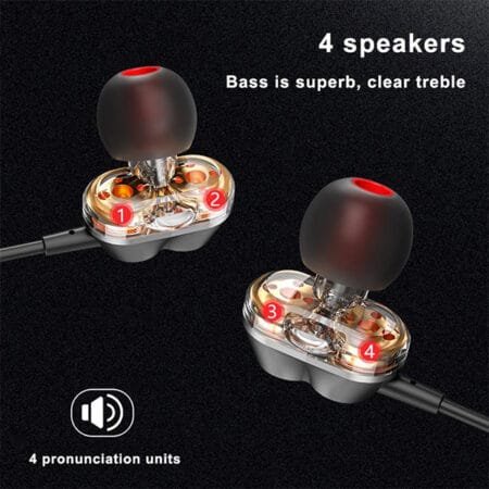 4-Core dual moving coil and 4 Speakers