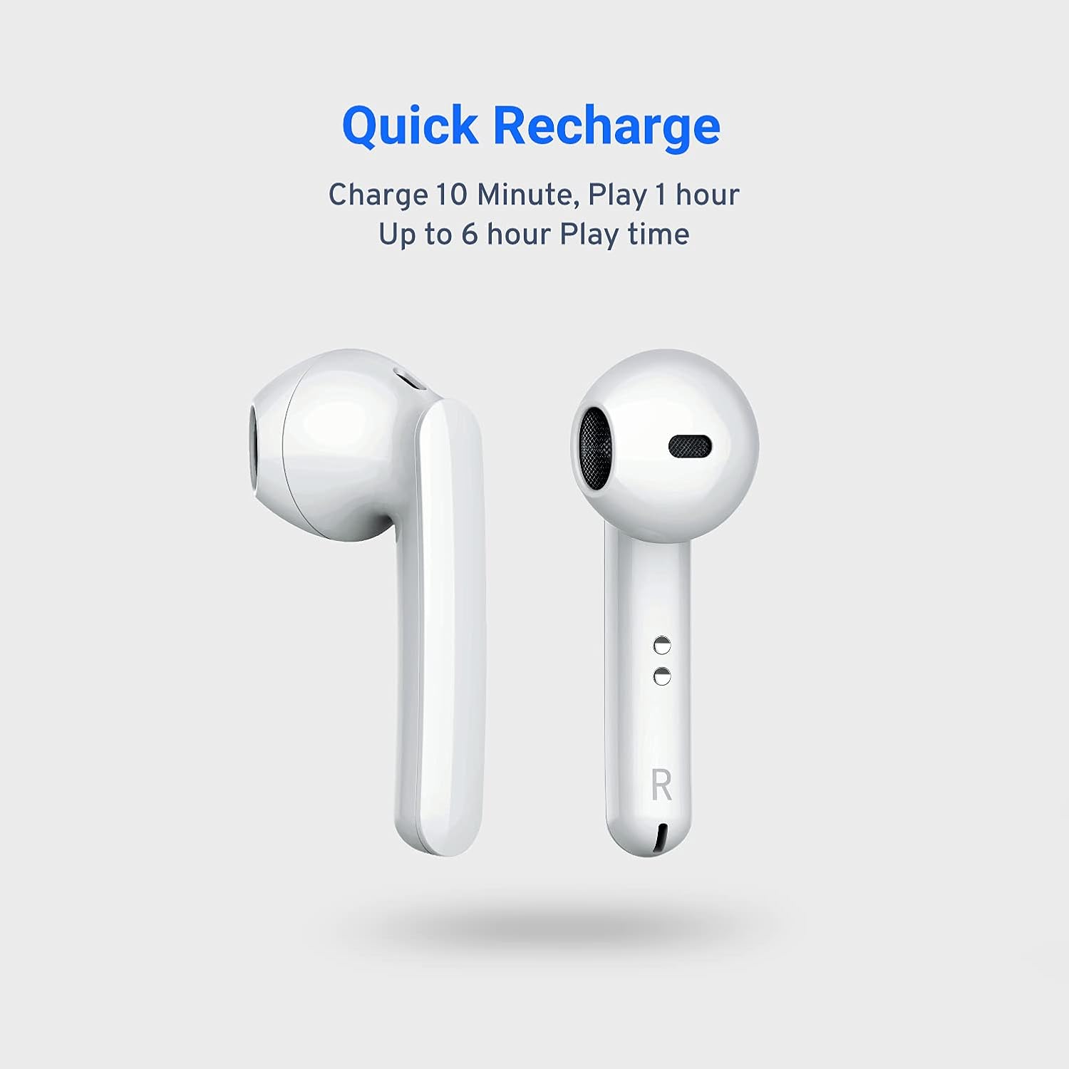 Charge on-the go – When the Bluetooth earbuds are fully charged, the playback time is 3 hours. The charging case can provide four recharges for the ear buds to extend the use time to 16 hours.