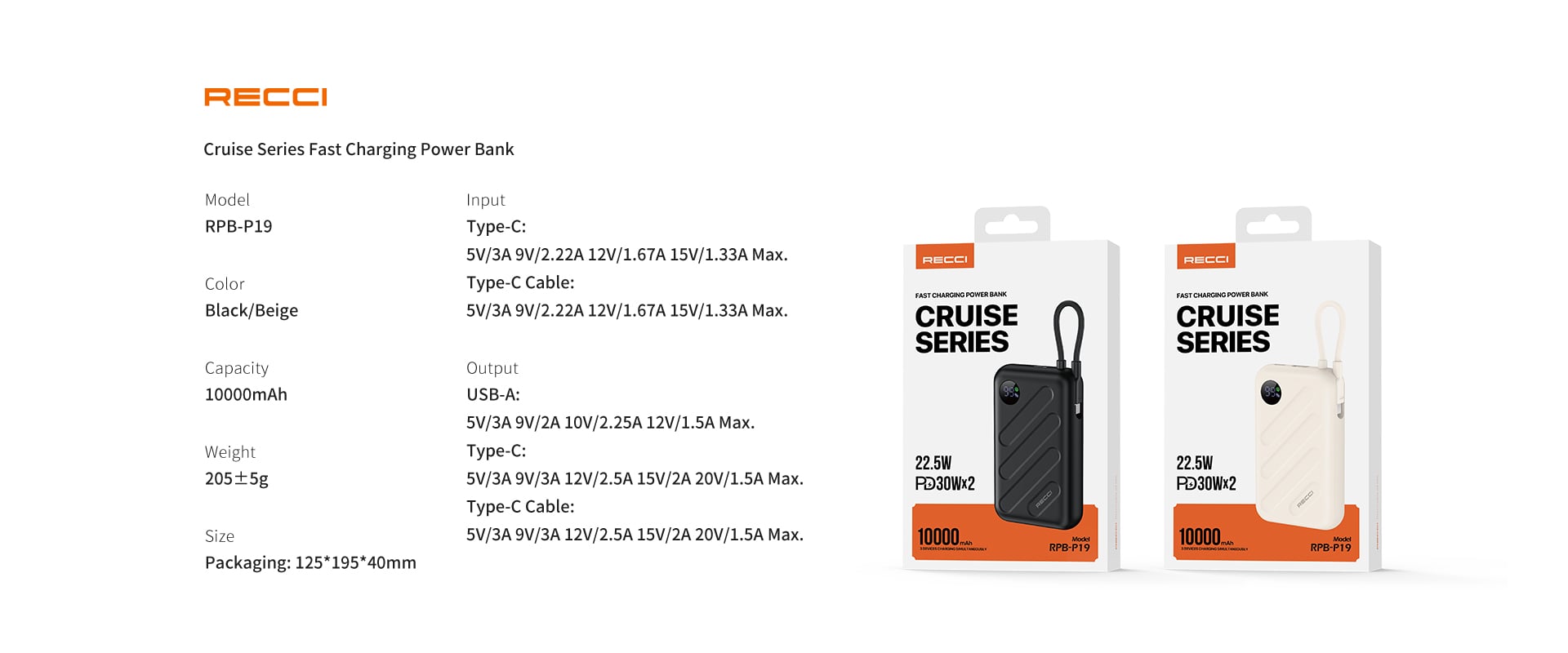Recci RPB-P19 10000mAH Power Bank