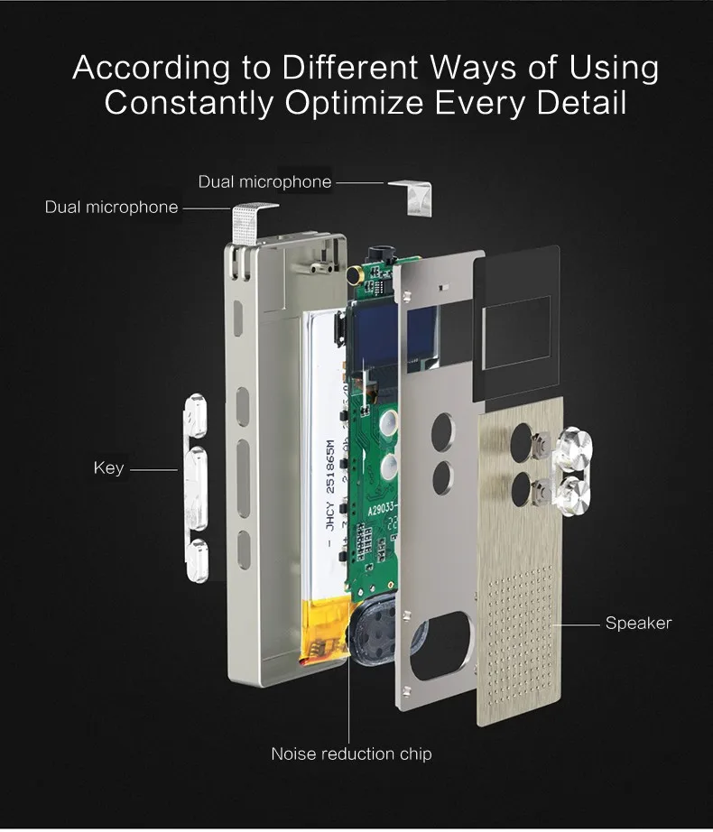 • Two functions in one: digital voice recorder and music player
