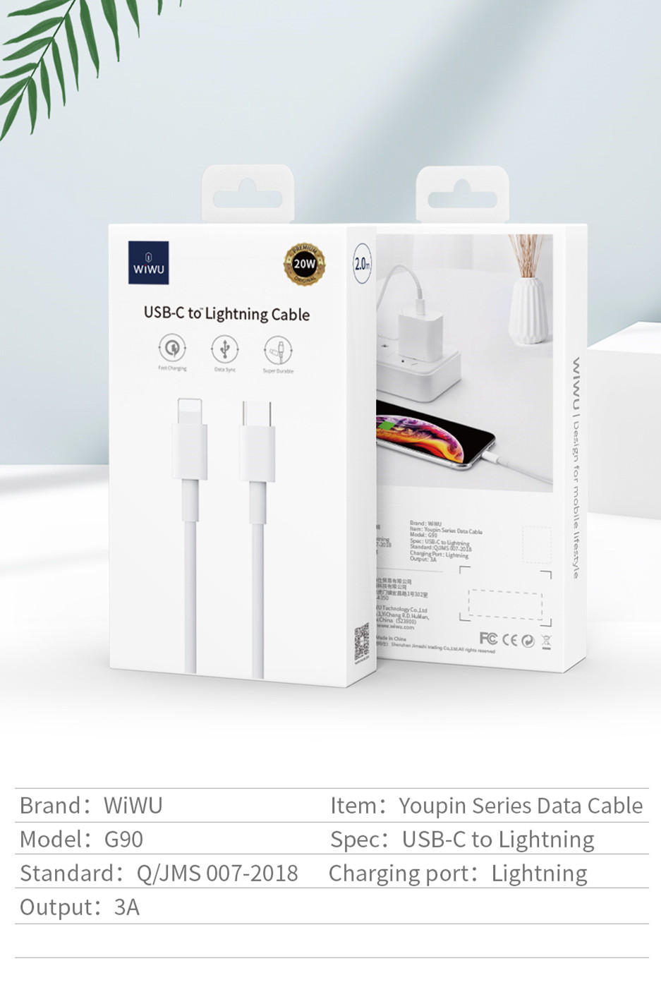 Wiwu 20W USB-C to Lightning Data Cable 20W (G90)