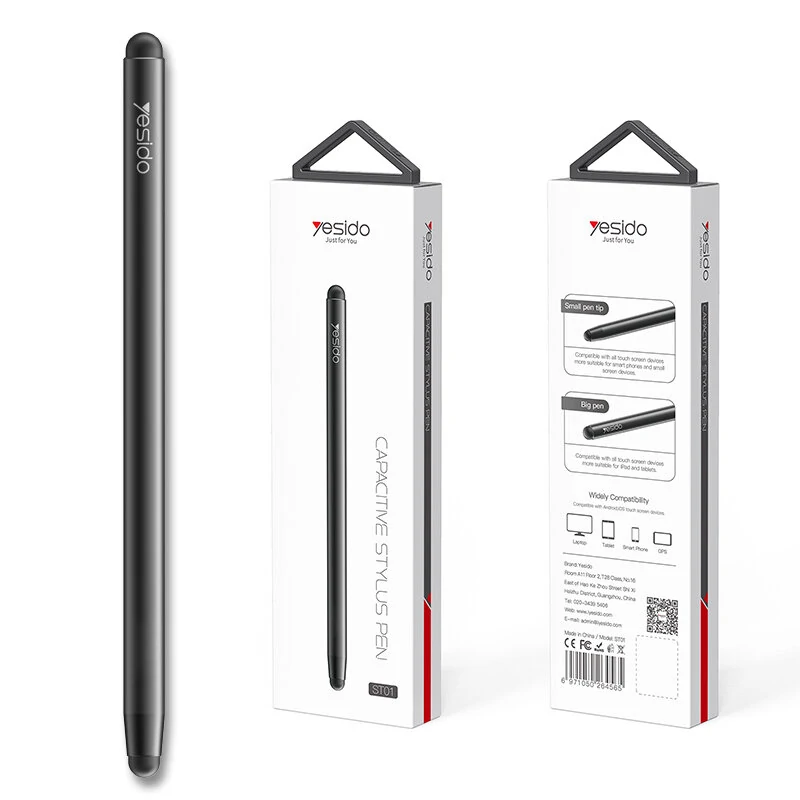 YESIDO ST01 Dual Tip Passive Stylus HD Touch Screen Capacitive Stylus Pen for Smartphones, iPad Pro Tablets Computer – Black